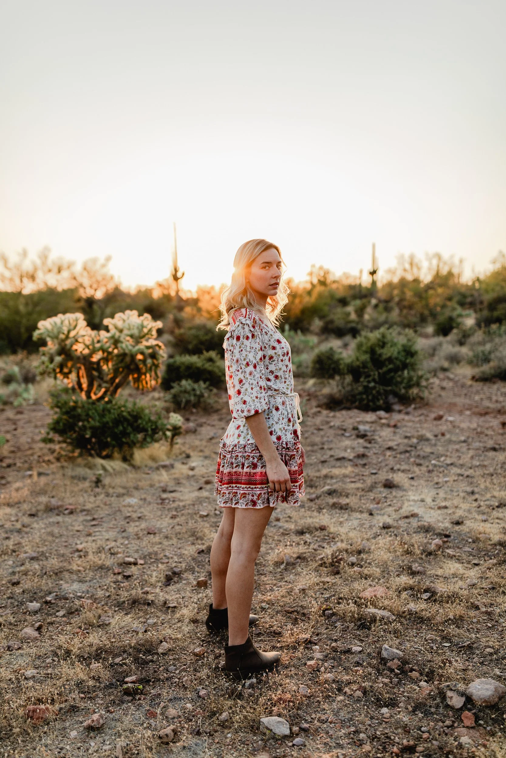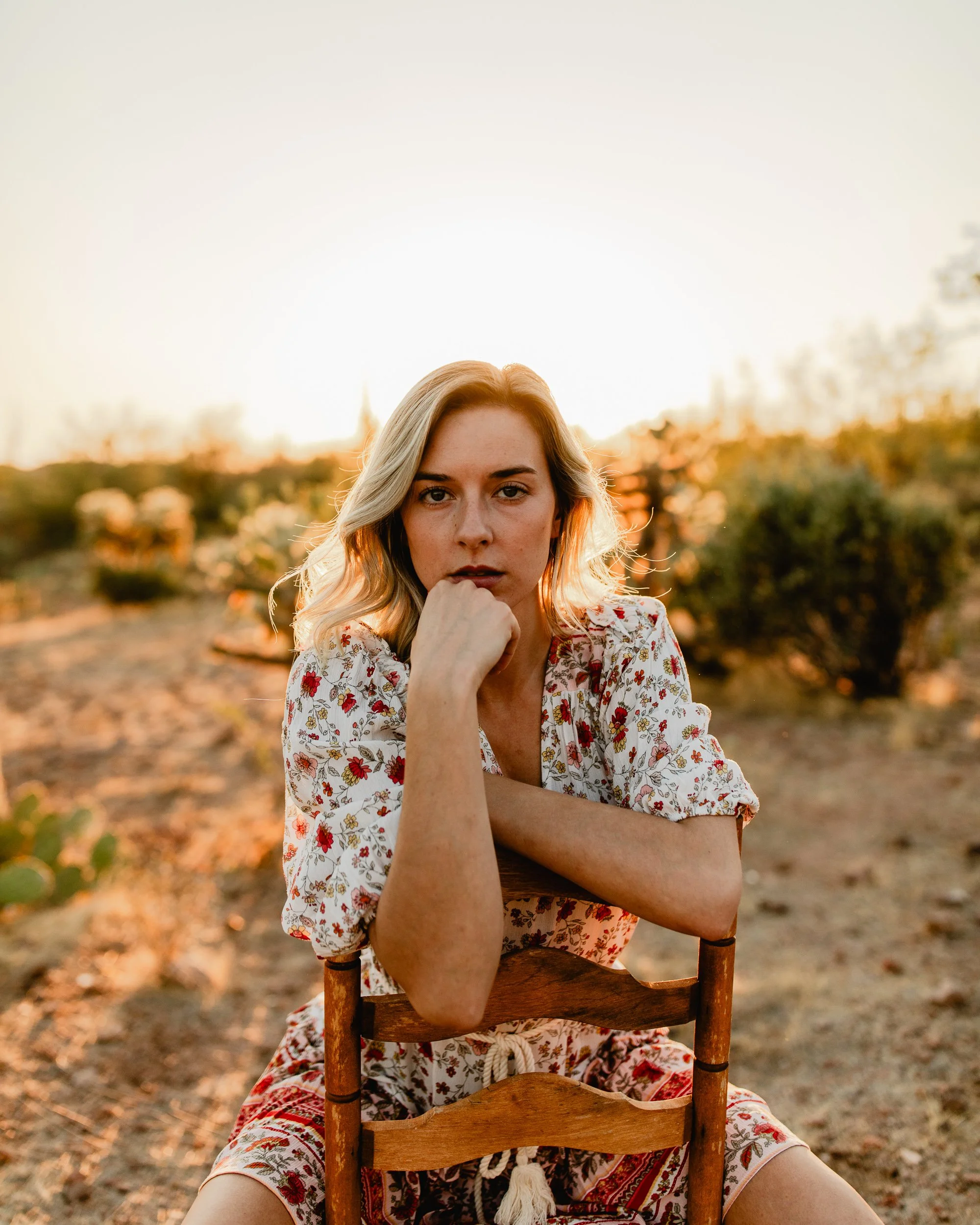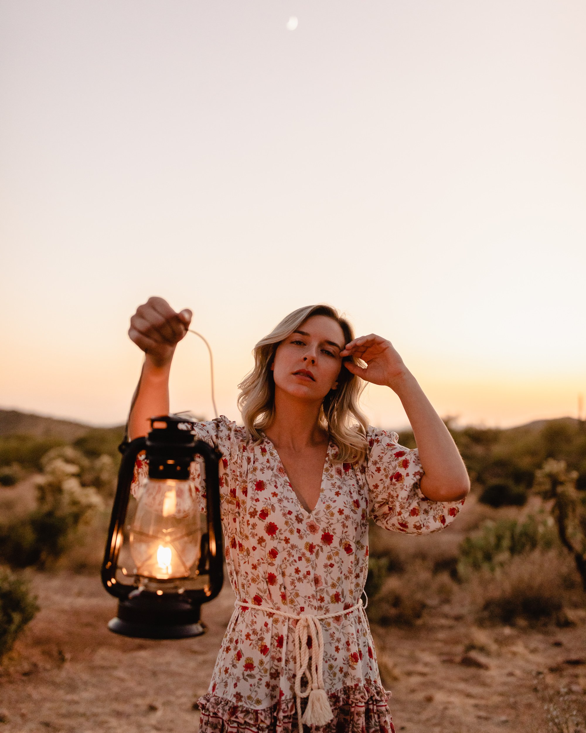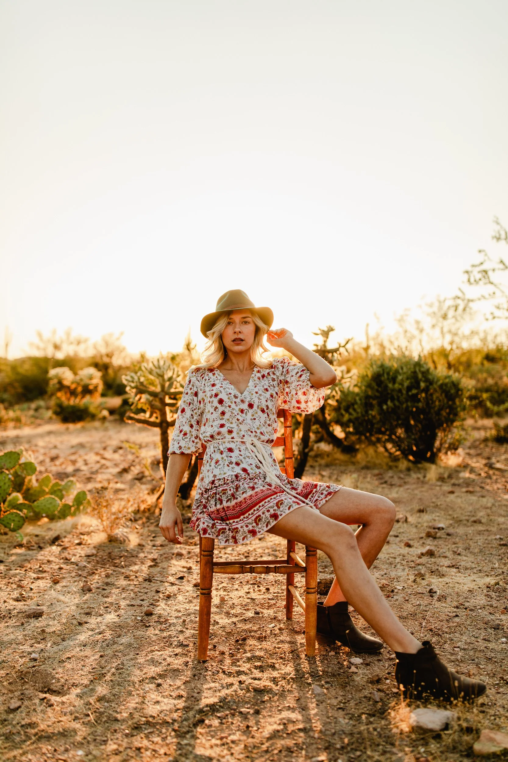 Whitney discovered my profile one day and messaged me wanting to do a shoot. As it turns out I had just discovered the perfect place in AZ a few days prior and knew it would be perfect. The entrance to the Lost Goldmine trail in Gold Canyon has the perfect backdrop for desert photos. Combining this, a desert themed dress, matching hat, and an old chair and lantern as props, I knew we had the perfect combination for an awesome shoot. These are some of my favorite images I’ve taken to this day and I still can’t get over how they turned out.